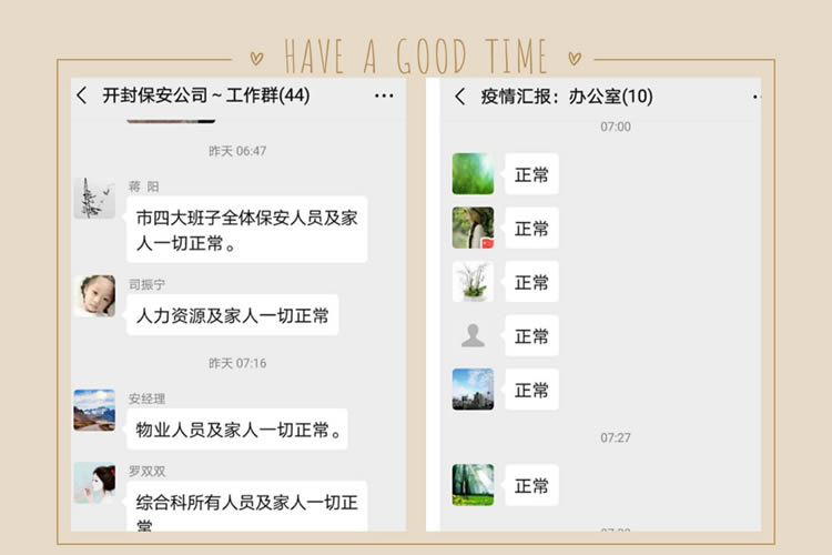 1、加強安全管理責任。切實履行職責使命,全員排查并填報《開封市保安服務有限公司在職職工新型冠狀病毒感染肺炎疫情防控排查表》,及時掌握在職職工、配偶、子女及其親戚的健康狀況。建立每日報告制度、24小時值班制度、登記制度、信息上報等,全力做好疫情防控工作。